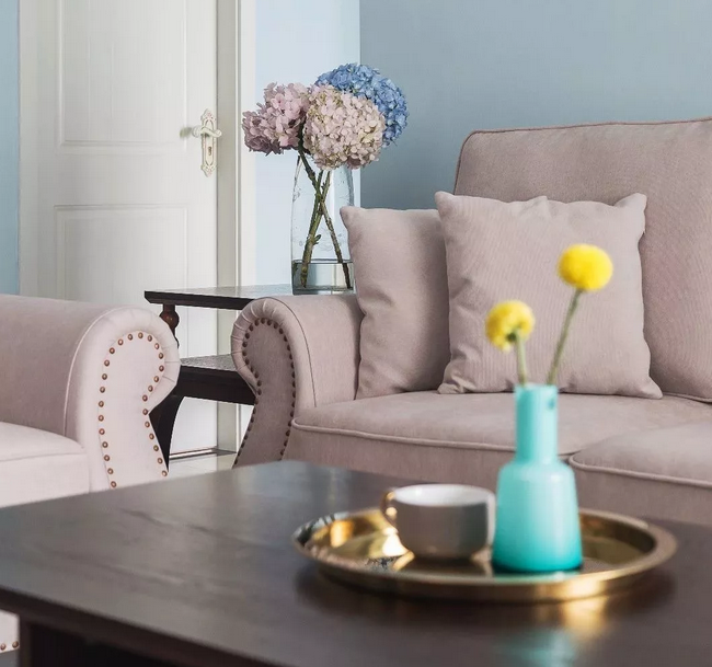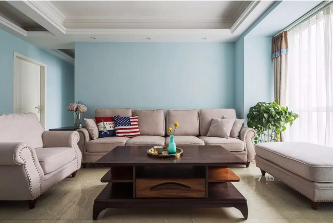 ▲整個(gè)開(kāi)放區(qū)域的墻面都以淡藍(lán)色刷新,簡(jiǎn)單卻又透著一股自然清新的氣息。一套舒適精致的現(xiàn)代美式布藝沙發(fā),布置在這個(gè)寬松的客廳里,顯得格外的舒適自然。