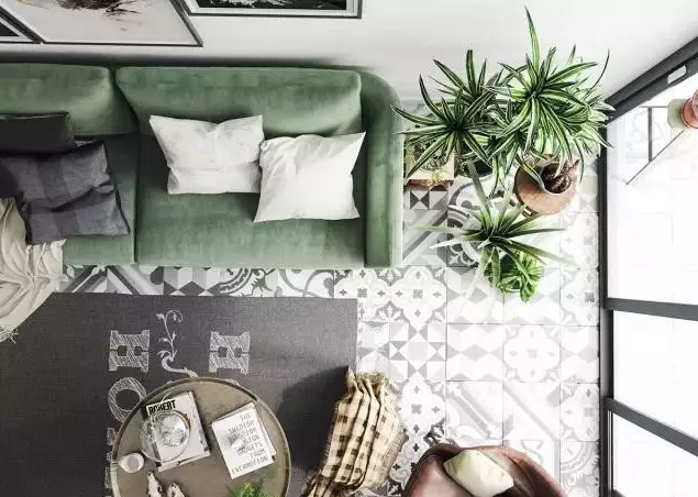 綠色與白色的空間開(kāi)闊明朗,搭配黑白色手工花磚以及各種地毯織物,豐富了家的層次感。家具風(fēng)格以斯堪的納維亞風(fēng)為主,低矮啊的家具很好的平衡了視覺(jué)感,白色墻面上用了一些攝影作品和畫作點(diǎn)綴,避免了單調(diào)性。北歐風(fēng)格的簡(jiǎn)約恰到好處的與這個(gè)清新的環(huán)境相融合。
