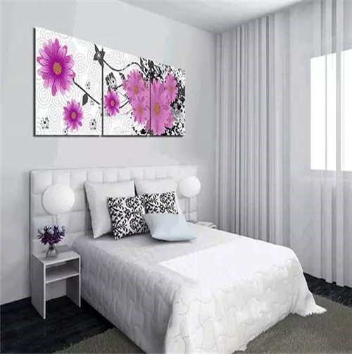 臥室是個人生活的私密空間,也是休息睡眠場所。臥室要營造溫馨浪漫、舒適恬靜的氛圍,掛畫以暖色為主色調(diào)??梢赃x擇人物人體、花卉等題材掛畫,當(dāng)然也可以掛自己的肖像畫或結(jié)婚照,以增進(jìn)感情。
