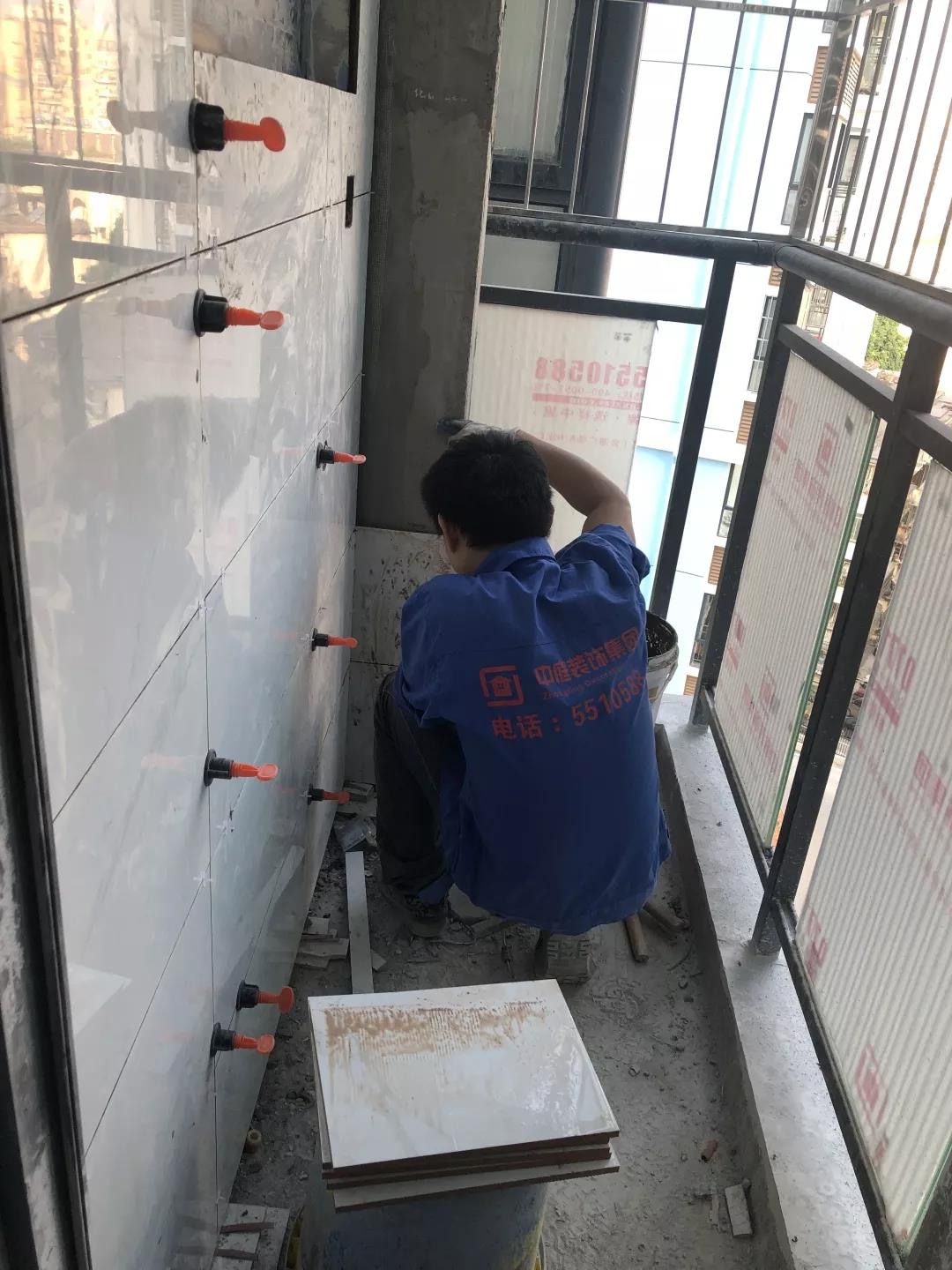 ▲現(xiàn)場工人鋪磚