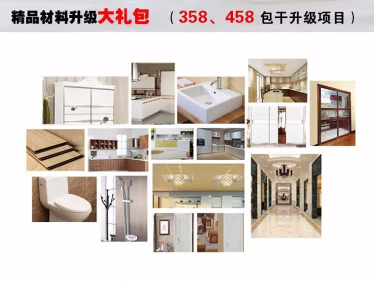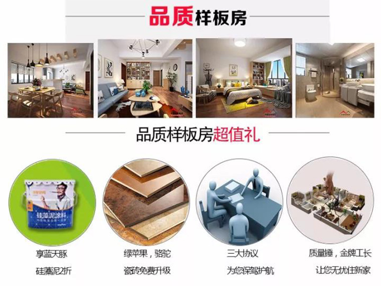 全房精品主材,墻漆,吊頂、瓷磚、木地板、衛(wèi)浴、櫥柜、室內(nèi)門,等免費(fèi)升級(jí),您可以選購(gòu)到自己心儀的家裝建材,還能享受超級(jí)折上折哦!