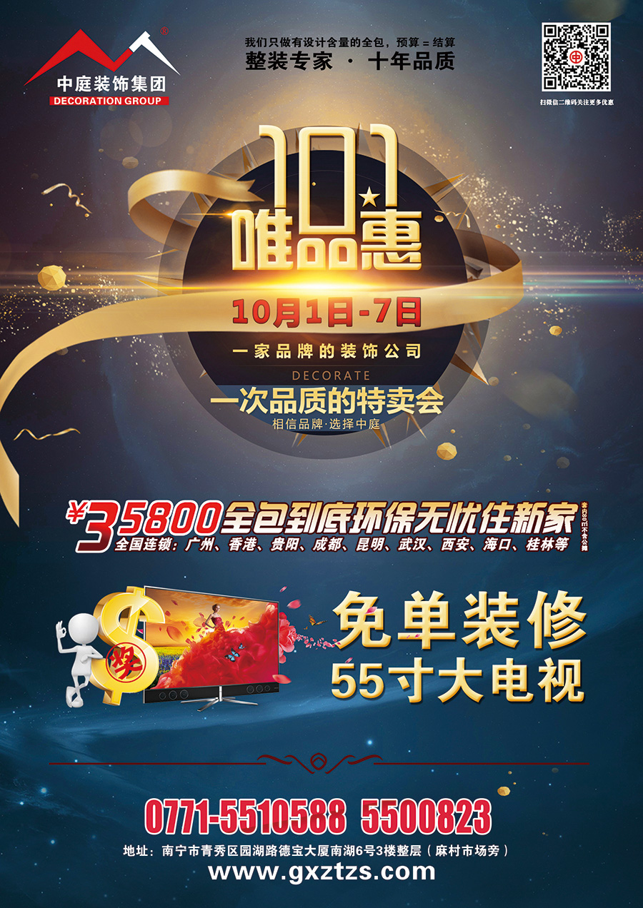 舉國同慶迎十一,中庭裝飾集團(tuán)推出大型家裝“唯品會(huì)”活動(dòng),一家品牌公司、一次品質(zhì)的特賣會(huì),只為給您提供更舒心的家裝!