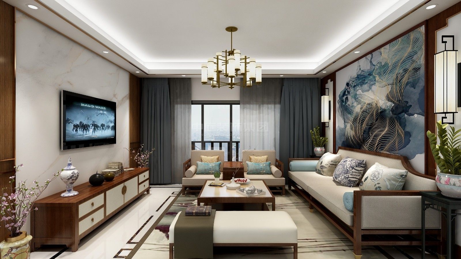 施工面積:120-150㎡| 設(shè)計(jì)風(fēng)格:新中式風(fēng)格