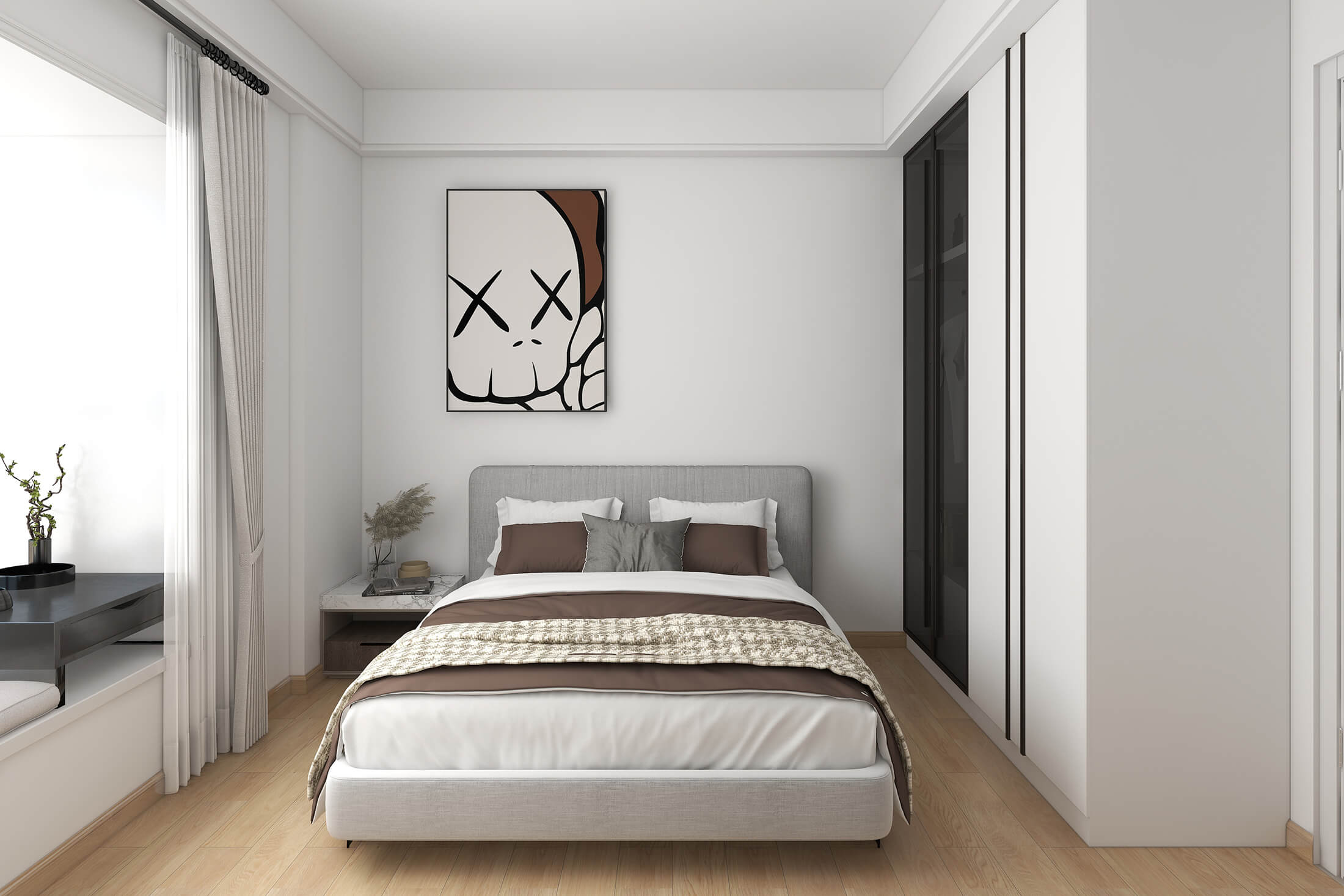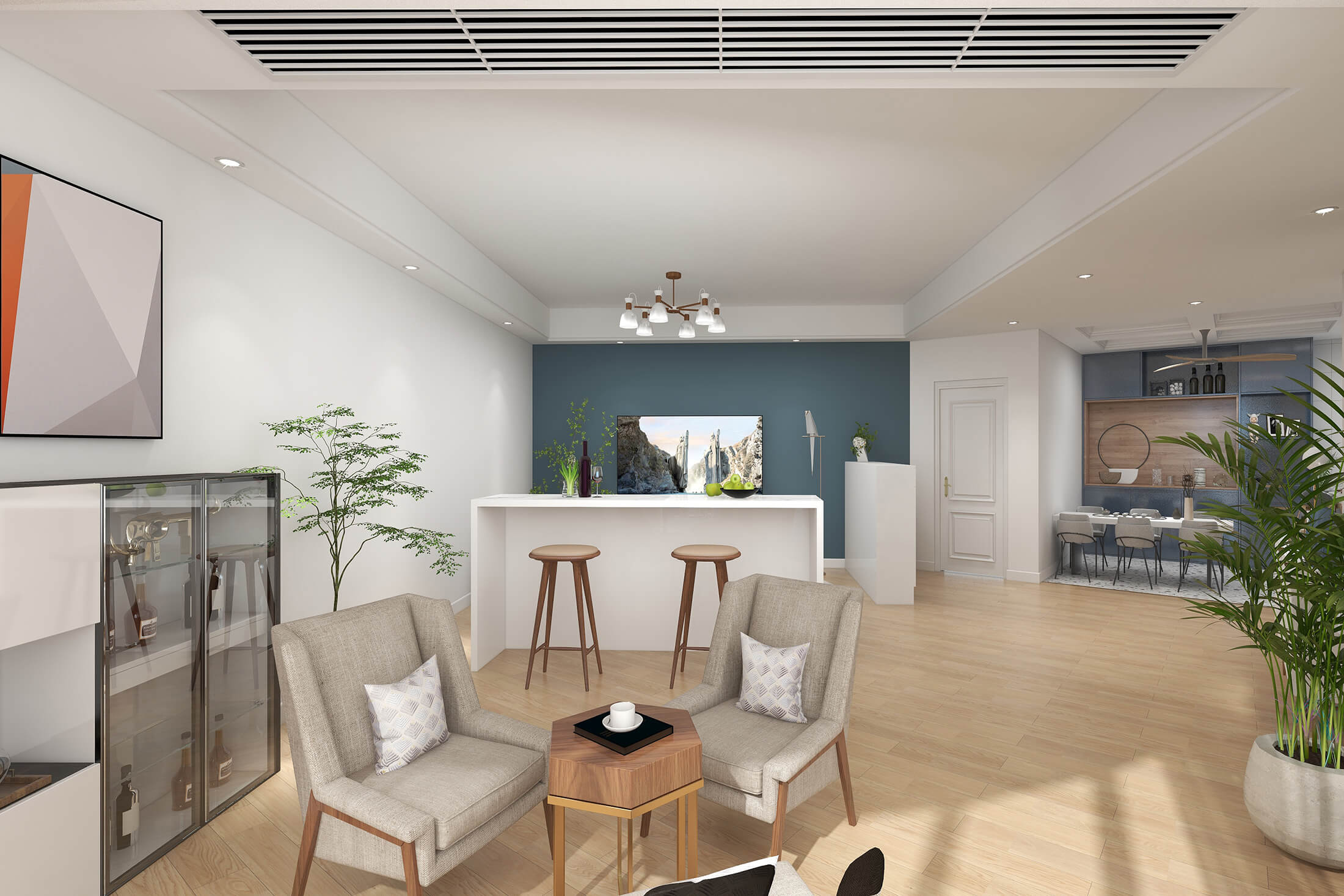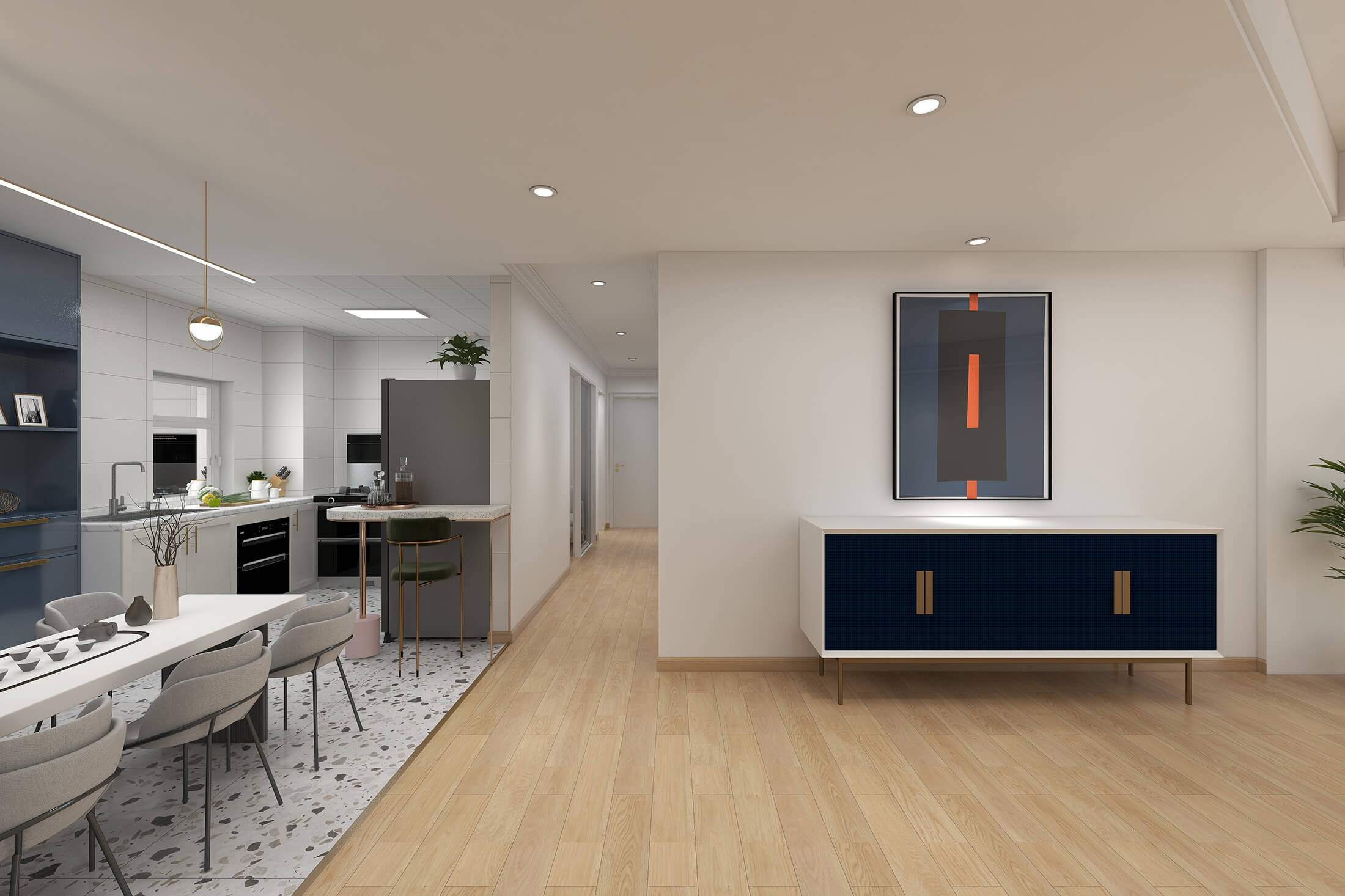 本案戶型為:4室2廳2衛(wèi),總面積119㎡?,F(xiàn)代簡約風格,顧名思義,就是讓所有的細節(jié)看上去簡潔大氣,業(yè)主追求簡素淡雅之美,希望加入現(xiàn)代元素。設(shè)計師將材料、色彩、燈光及元素進行簡化,用簡潔的視覺效果營造出淡然清雅、寧靜超脫的氛圍。