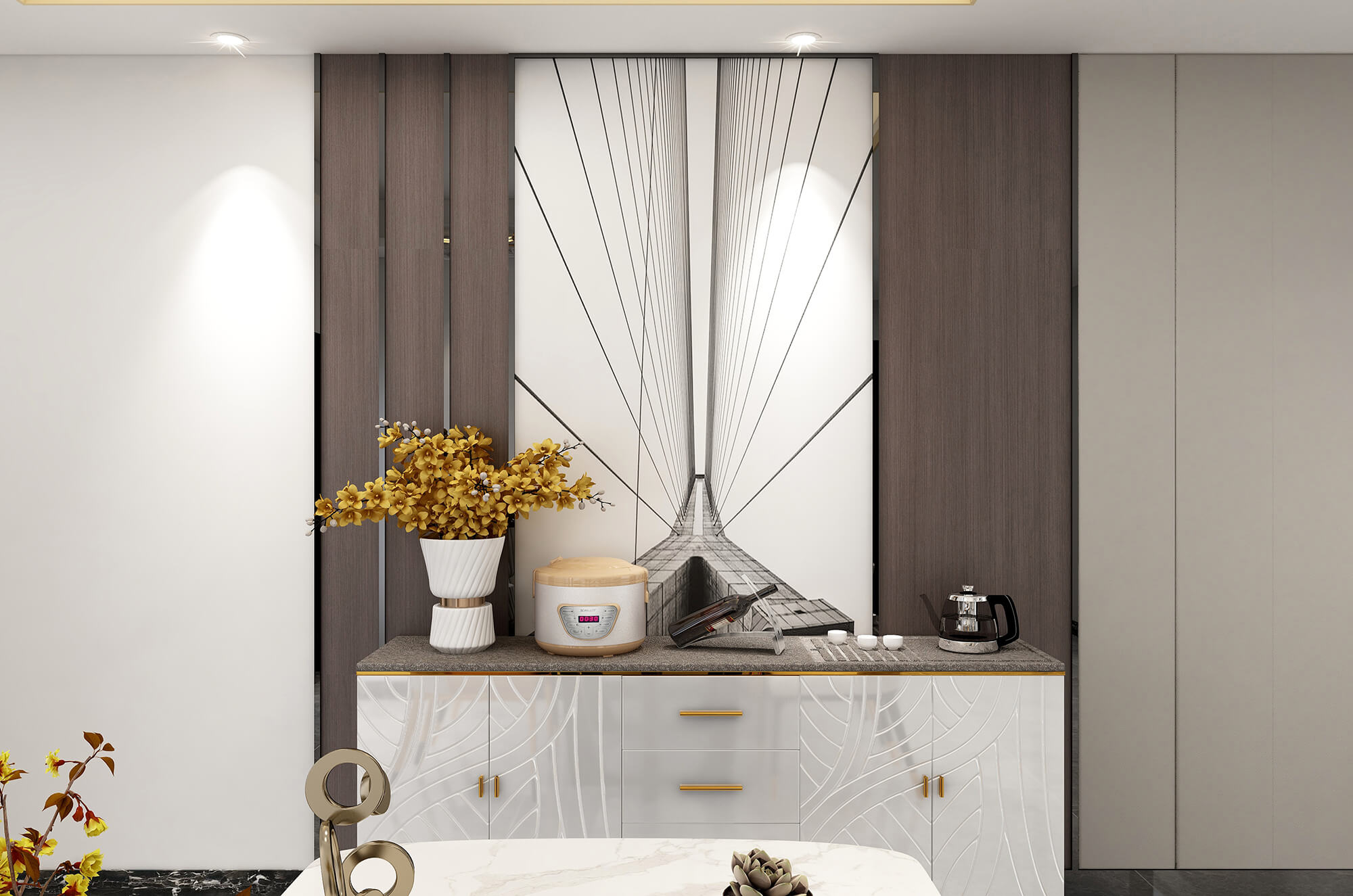 瀏覽量:557本案整體空間設(shè)計時尚大氣、舒適宜居。以淺灰為主色調(diào),在空間與家具中巧妙的糅合了金屬元素,營造出時尚前衛(wèi)的家居氛圍,適當(dāng)?shù)牟AР馁|(zhì)、亮色作為點綴,增添精致質(zhì)感,形成了獨具特色的現(xiàn)代簡約輕奢風(fēng)格。