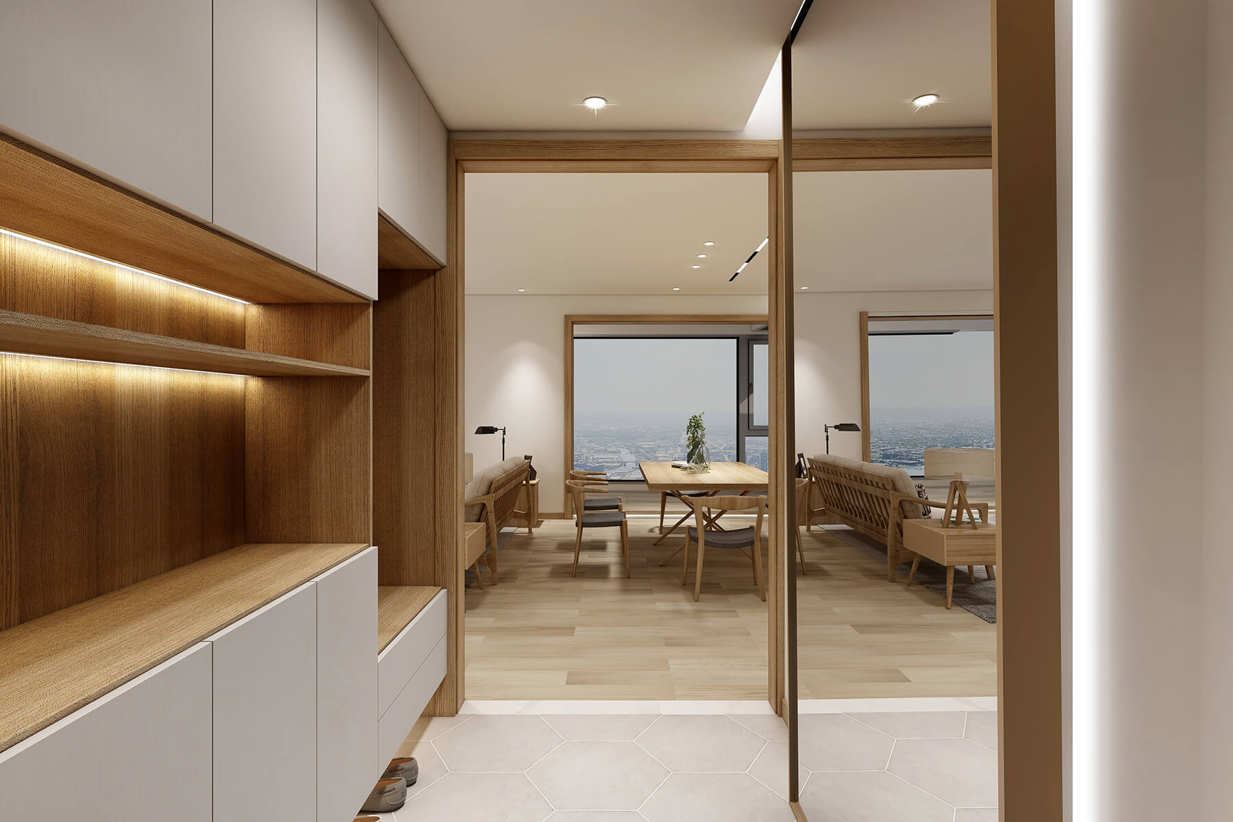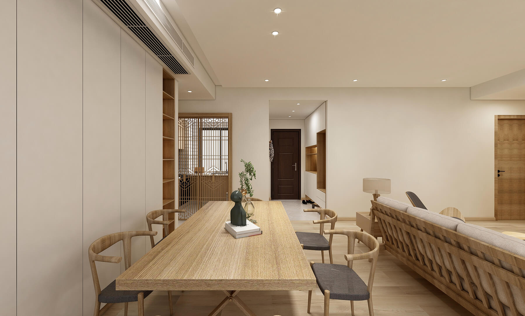 本案例為152㎡的日式風(fēng)格,整體采用木質(zhì)結(jié)構(gòu),不尚裝飾,簡約簡潔。日式的干凈,可能再差一點點就不食人間煙火了??善植盍四敲匆稽c,所以在幽玄的意境下,煙火氣也完整地保留了下來。對原木質(zhì)感和陽光的熱愛,是日式溫暖的關(guān)鍵。柔美綠植和婆娑微妙的光影意境,又實現(xiàn)了日式美學(xué)的意境追求,打造溫暖自然的意境。