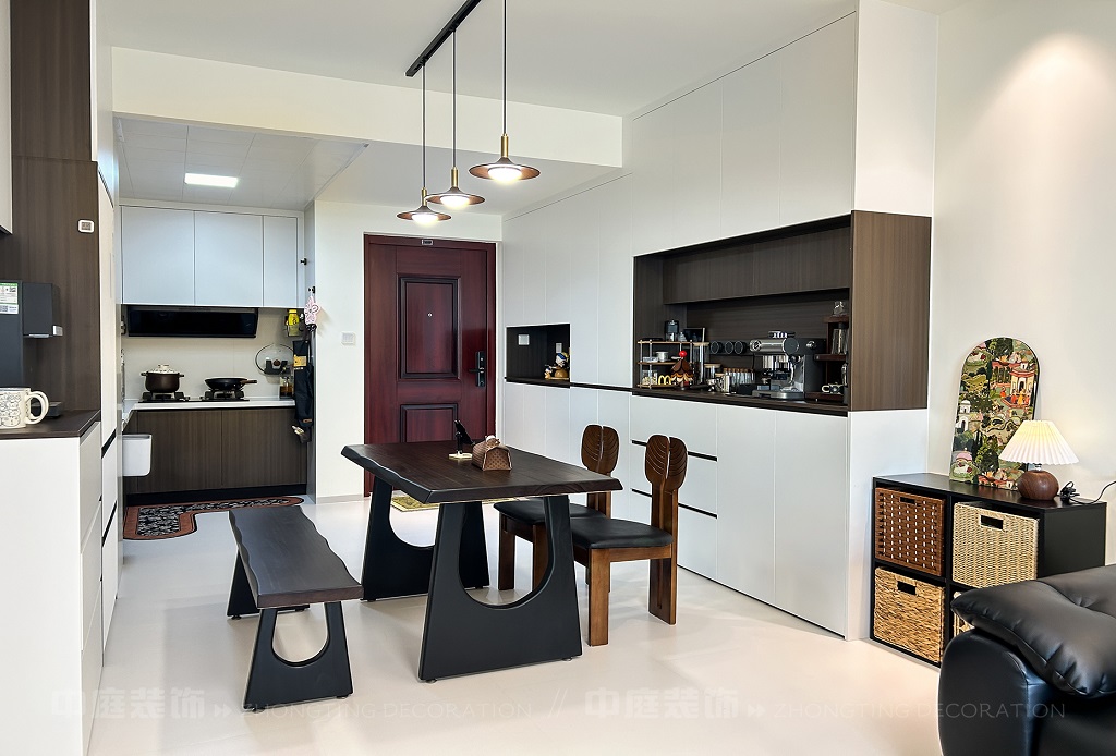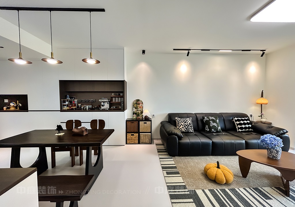 這套房從普通居所蛻變?yōu)槎际携熡鷪?,客餐廳以黑白棕營造高級松弛感,咖啡角、藝術(shù)畫、游戲區(qū)藏著主人對生活的熱愛,餐廚煙火與雅致共生,每處角落的陳設(shè)都是靈魂的妥帖安放,是裝滿故事與溫度的私屬堡壘。