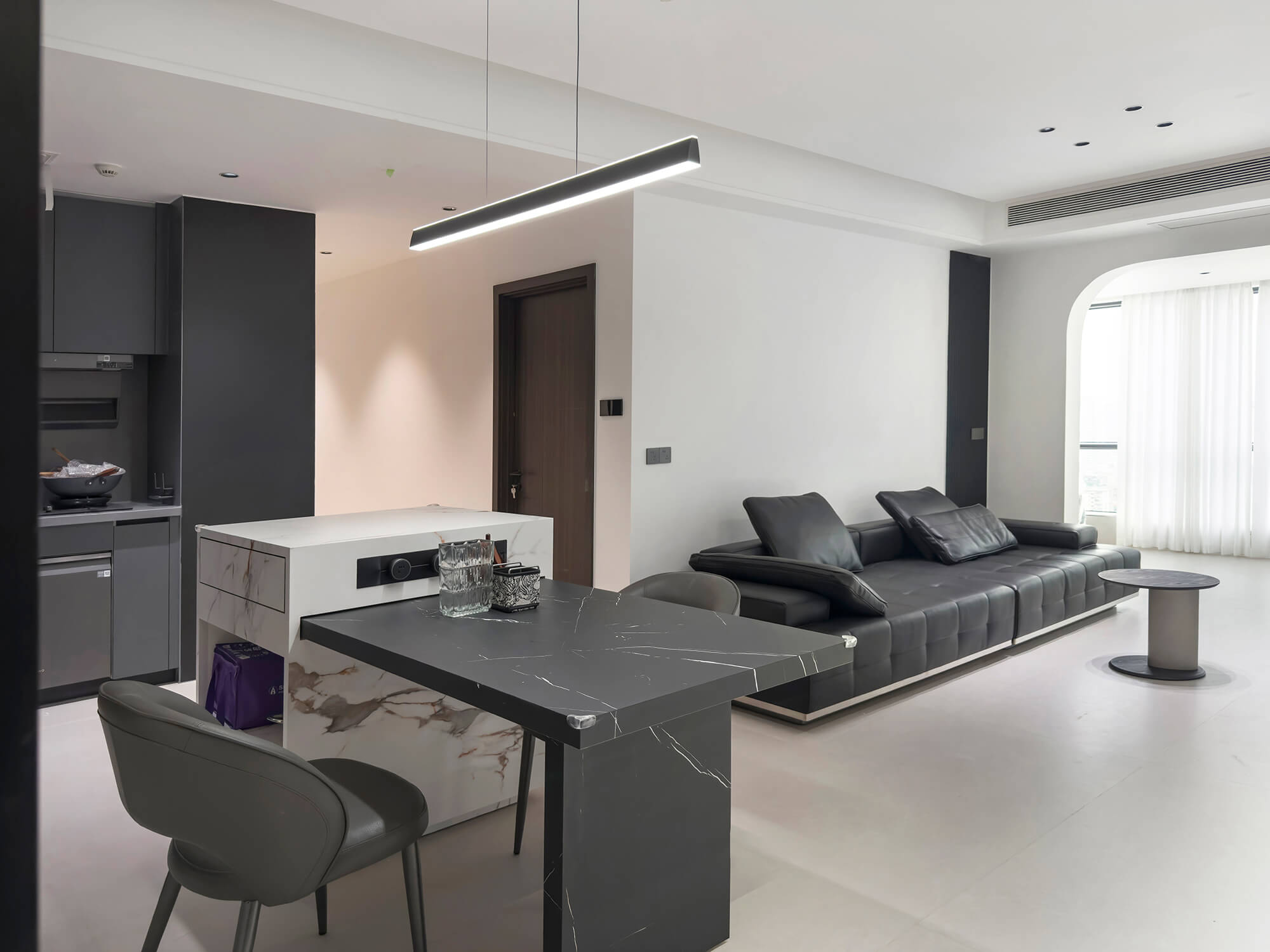 瀏覽量:211比極簡風(fēng)格更強(qiáng)調(diào) “去繁就簡”,剝離所有非必要元素,僅保留空間核心功能與最簡潔的視覺表達(dá)。線條極致利落,色彩以單色調(diào)或雙色對比為主,材質(zhì)偏好純粹質(zhì)感,追求 “空而不空” 的境界,傳遞寧靜、專注、無干擾的純粹空間體驗(yàn)。