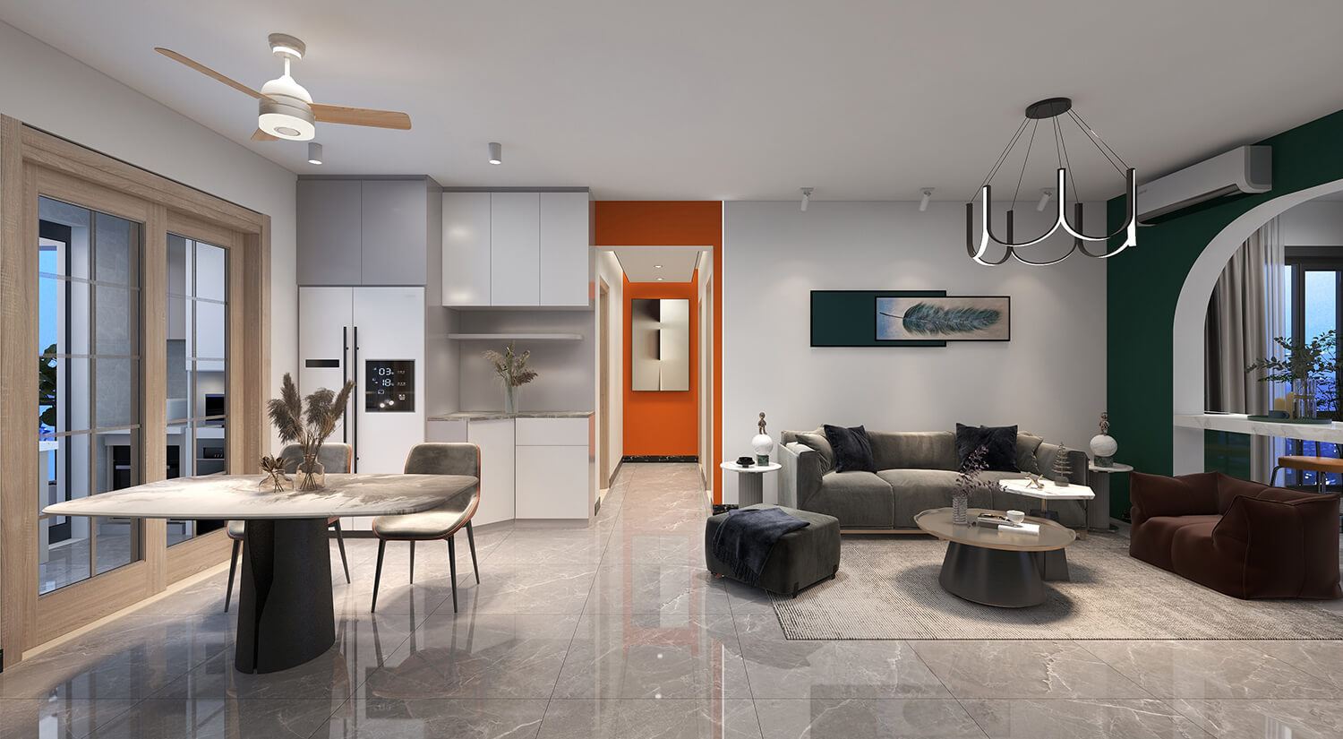 本案例戶型為:3房1廳1衛(wèi),總面積125㎡。這是一套輕奢風格的房子。設計師采用開放式布局,將客廳、餐廳融為一體。這樣不僅增加了家庭成員的互動和交流,也可以讓房間看起來更加寬敞。輕奢金屬飾品與布藝沙發(fā)的結(jié)合,使得畫面具有時尚感又不乏溫馨。