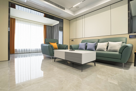整個空間變得更加寬闊通透,視野也有一定的拓展,藍(lán)色系的空間在整個空間當(dāng)中變得更加大氣,再加上灰綠色的布藝沙發(fā),灰色的茶幾在色調(diào)上有的用的沖擊性豐富了整個空間當(dāng)中的層次。